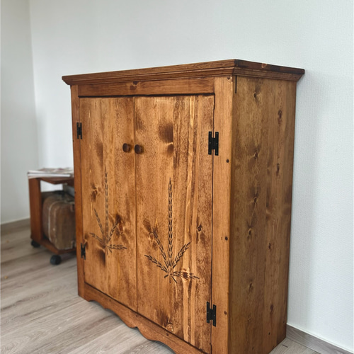 - 美術品・アンティーク・コレクション > 家具 > レトロ 古家具 彫刻入り 木製キャビネット アンティーク 戸棚 ♪サイズ変更可 stdキャビネット アメリカンカントリー 彫刻 麦穂彫刻