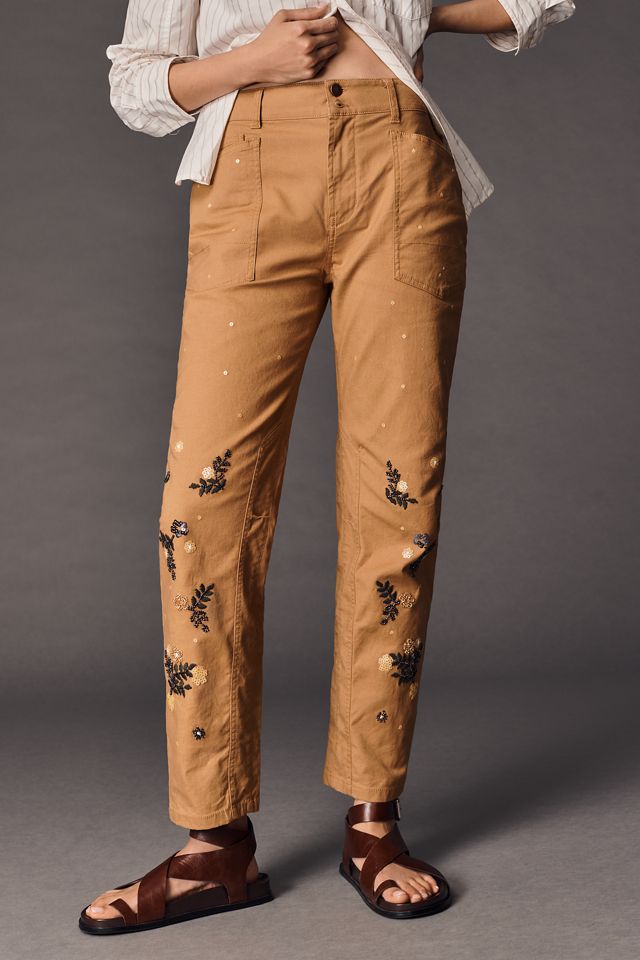 タグ付き アピースオブライブラリー リネンシャンブレーキュロットパンツ The Wanderer Mid-Rise Relaxed-Leg Pants by Pilcro: Appliqué