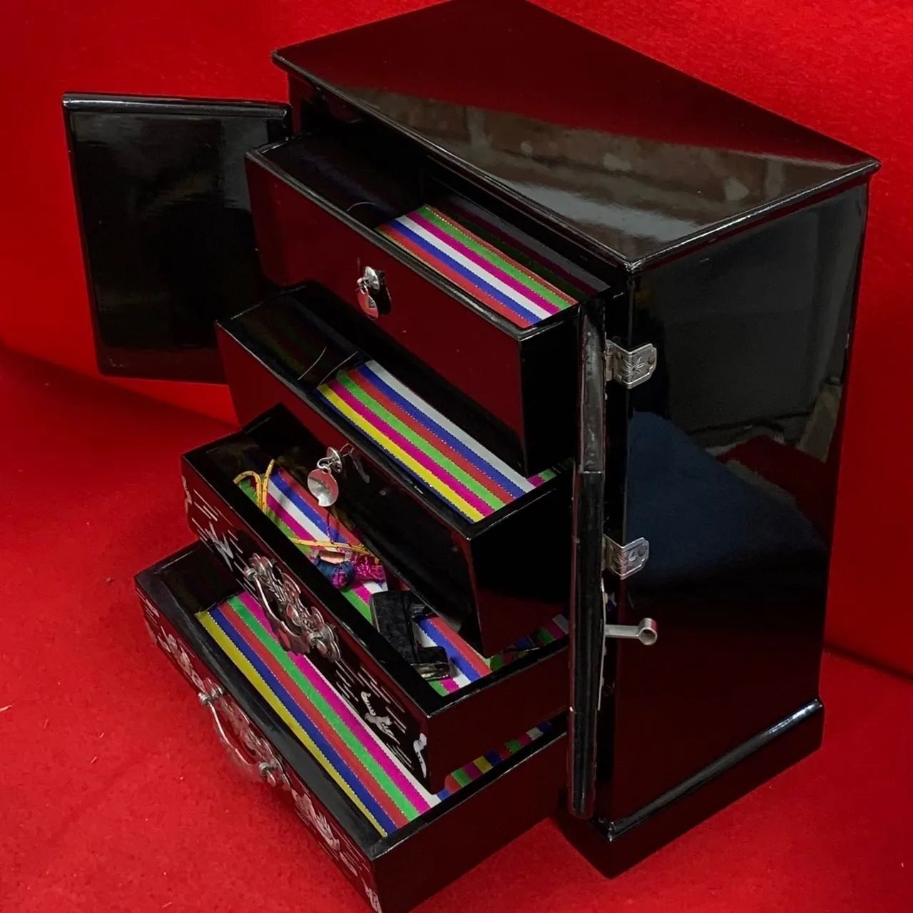 - 美術品・アンティーク・コレクション > 家具 > 【珍品】豪華 螺鈿細工 観音開き 小物収納 小引出し 漆 鏡面仕上げ 李朝家具 珍品】豪華 螺鈿細工 観音開き 小物収納 小引出し 漆 鏡面仕上げ 李朝