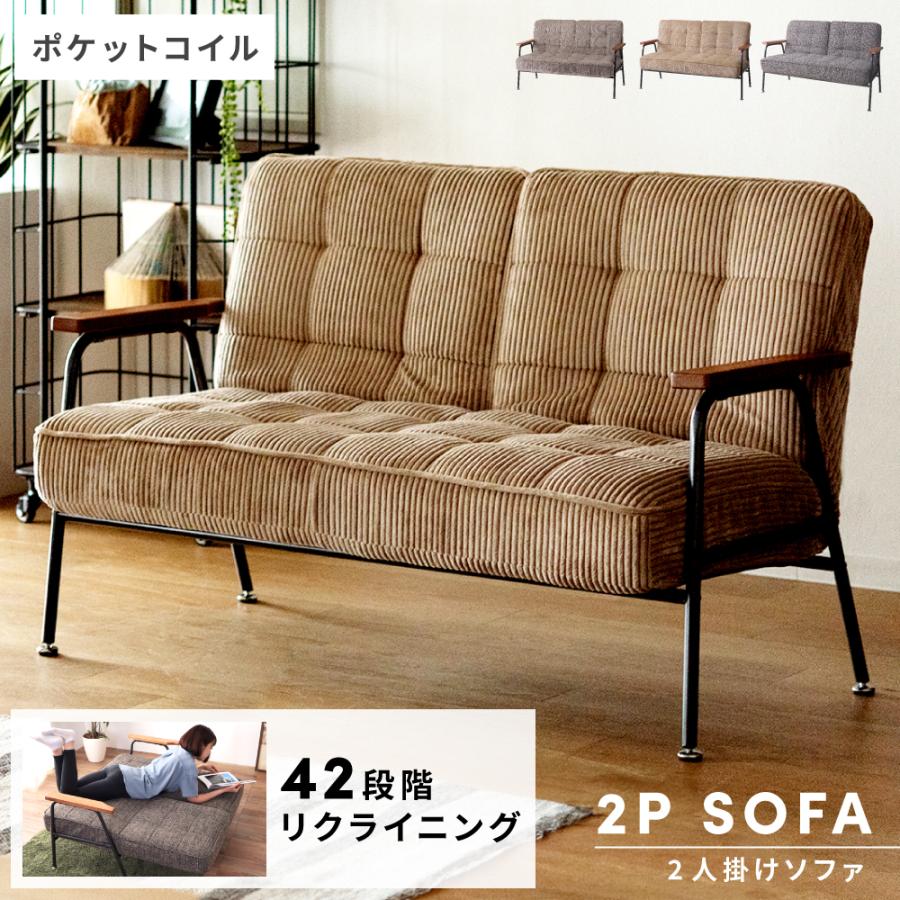 - ソファ・ソファベッド > ソファベッド > 【送料無料】コーデュロイソファ 2人掛け 14段階リクライニング ポケットコイル 東谷 ソファー ソファ 2人掛け リクライニングソファ ソファベッド