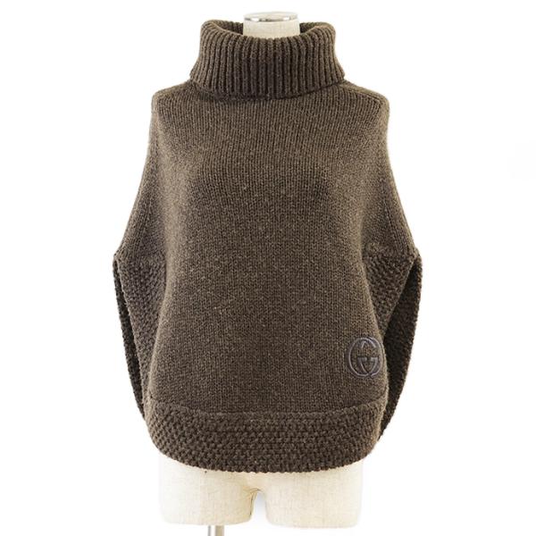 - レディース > ジャケット・アウター > グッチ レザーロゴパッチ ハイネック ニット ポンチョ ケープ ブラウン グッチ レザーロゴパッチ ハイネック ニット ポンチョ ケープ ブラウン