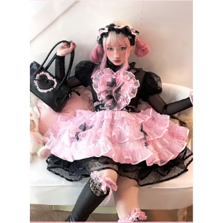 - レディース > スカート > Heart-E 黒ハートエプロンスカートとリボンカチューシャ Sweet Heartエプロンスカート ピンク×ブラック | tulle オンラインストア