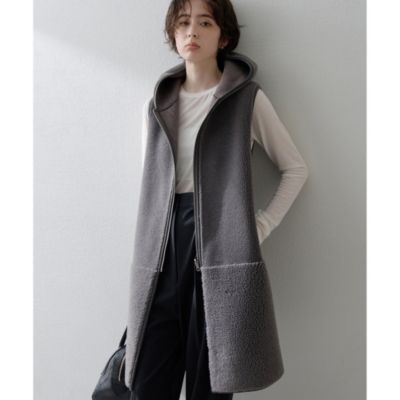 - レディース > トップス > 1回着用のみ♪ウィムガゼット 【THE PAUSE】ボアフードロングジレ グレー Whim Gazette(ウィム ガゼット)の【THE PAUSE】ボアフードロングジレ
