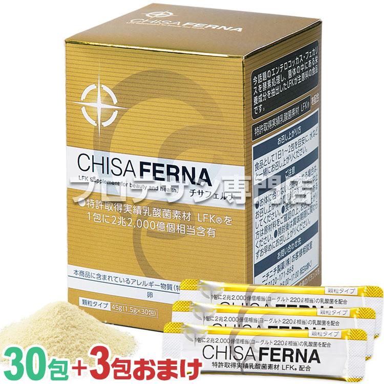 | 商品の特徴 | チサフェルナ 30包 +3包増量(計33包) CHISA FERNA ニチニチ製薬 LFK。チサフェルナ 30包入り +3包進呈 《LFK10%増量の新タイプを。ニチニチ製薬 チサフェルナ 3箱 楽天市場】【3箱セット】チサフェルナ。こちらは、ニチニチ製薬会社のチサフェルナ3箱になります。チサフェルナは乳酸菌「LFK®︎」を一包で2兆2000億個相当を含む健康食品です。腸の調子を整えたり、身体を整えてくれます。定価9720円(税込)賞味期限 2027年1月18日 お値下げは不可とさせていただきます。元々は自分と主人のために大量にまとめ買いしたものですが、私も主人も持病の薬に影響する可能性があるとのとこで主治医より中止するように言われたため使用できなくなりました。そのため新品で約6割引以上でかなりお買い得となっております。在庫も残りわずかとなってきましたので、この機会にぜひご検討ください。質問がありましたらよろしくお願い致します。。チサフェルナ 30包入り×3箱セット chisaferna ニチニチ製薬 乳酸菌含有。。セサミンE 150粒入 10箱 セット。EM X GOLD イーエムエックスゴールド 500mL箱に傷や汚れあり。ペプチア 180粒 3袋セット。【新品未開封】大塚製薬 エクエル 120粒 4袋セット。【大幅値下げ】小林製薬 エディケアEX 3箱 ※注意書きをお読みください。ワタナベオイスター160粒 | ||