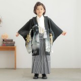 - レディース > 着物・浴衣 > 格調とやわらかさを纏う 最高級浜縮緬の紋付色無地フルセット 新品 157/67 男児袴:BY156 【五歳】黒帆船×黒縞(BY164) 七五三男児袴レンタル