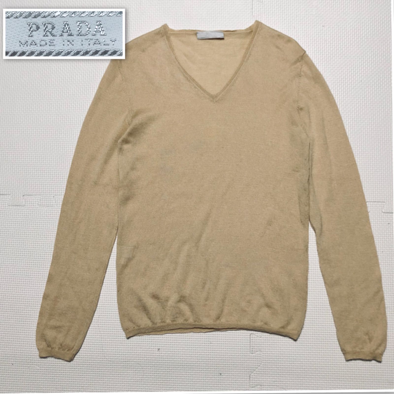 | 商品の特徴 | □良品□希少シルク混カシミヤ□PRADA プラダ Vネックニットセーター。Men's PRADA V-Neck Cashmere/Silk Sweater size 54 | eBay。Vネック PRADA(プラダ) ニット・セーター(レディース) - 海外通販のBUYMA。※ご購入前にプロフィールをご覧ください!【概要】プラダのVネックニットセーターであり、かなり希少なものとなります。カシミヤとシルクといった最高品質素材が惜しみなく使用されていることから、着心地や触り心地は大変素晴らしいです。また薄手の生地ですので、夏以外の季節であればいつでもご着用いただけるかと思います。さらに伸縮性のある生地感のため、ユニセックスとしておすすめできます。数回のみの着用で、毛玉もなく状態は良好だと思われます(小さな汚れ等を見落としているかもしれません)。しかし、一度人を手に渡ったものですので、その点ご留意ください。なかなか出回っていないと思うので、ぜひご検討いただけますと幸いです。 【詳細】・ブランド:PRADA(プラダ)・カラー:ベージュ・サイズ:48(3枚目の画像参照)・肩幅:約47cm・身幅:約44cm・袖丈:約55cm・着丈:約64cm【備考】・平置きで計測しています。・素人採寸なので多少の誤差はご了承下さい。・実物と写真で多少の誤差もあるかと思いますがご了承下さい。・あくまで古着になりますので、神経質な方はご遠慮下さい。・古着にご理解頂ける方のみご購入お願いいたします。・返品は受け付けておりません。。PRADA(プラダ) [飯能本店]PRADA Vネック サマーセーター ニット。。Taiga Takahashi 23ss LOT.505 ニット。新品未使用 ナイスネス NICENESS JEFFREY M。極美品!BOTTEGA VENETA ニット セーター カシミヤ100% 厚手。TTT_MSW Kasuri Knit polo ハーフジップ ニット 刺繍。UNDERCOVER 19aw ハイネック バルーンニット ウールニット 2。【美品】クルチアーニ クルーネックニット サイズ50 セーター ブラック 黒。【美品】コモリ COMOLI アルパカ100% クルーネックニット。ダイム DIME MOHAIR WAVE KNIT FALL25。トップス Supreme Futura Sweater \"Olive\" L。Supreme シュプリーム スモールボックスロゴ セーター XL オリーブ。プラダ PRADA ニットセーター カシミヤ混 | ||