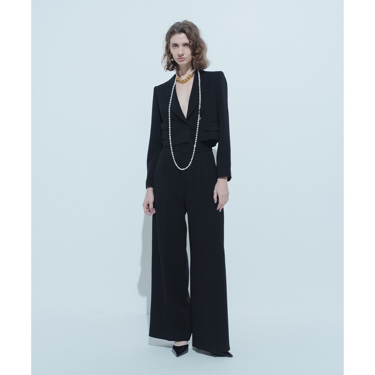 大幅に値下げ‼️ロドリリオン ブラックサスペンダー付きワイドレッグサロペット RhodolirioN/ロドリリオン】Suspender slacks:サロペット