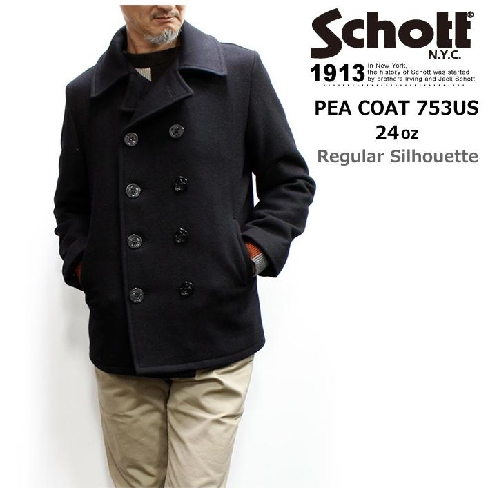極美品✨ショット ウールメルトンPコート 753US ブラック 上野商会 38 Schott N.Y.C(ショット) Schott PEACOAT 753US (ショット メルトン