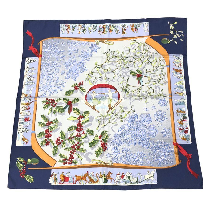 ☆名作☆ HERMES カレ90 Neige d'Antan 去年の雪ネイビー エルメス カレ90 neige d antan 去年の雪 ネイビー レディース HERMES