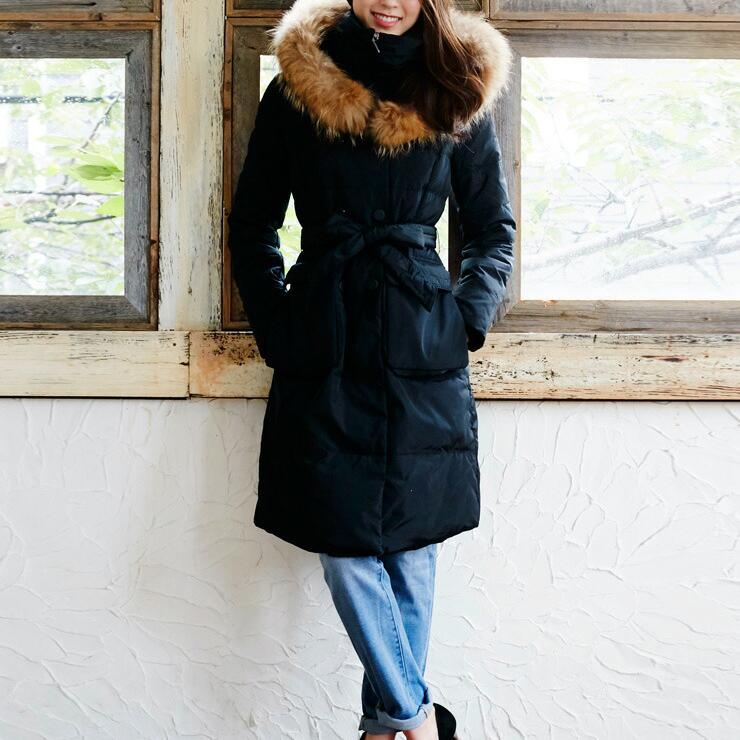 - レディース > ジャケット・アウター > 極美品 ダントン ダウンコート ラクーンファー付き ネイビー ロング 38 80%OFF】ダウンコート レディース ロング 超ロング ラクーン ファー