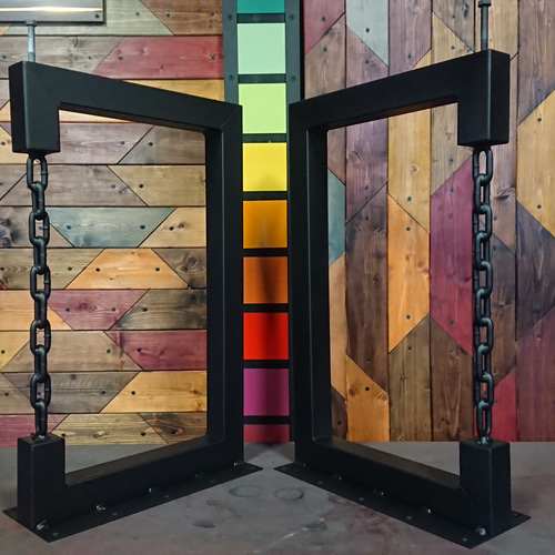 - 家具 > テーブル・机 > マットブラックでアイアンな極太鉄脚♪ 50×400×650mm □型 3脚 マットブラックでアイアンな極太鉄脚♪ 50×400×650mm □型 2脚ver