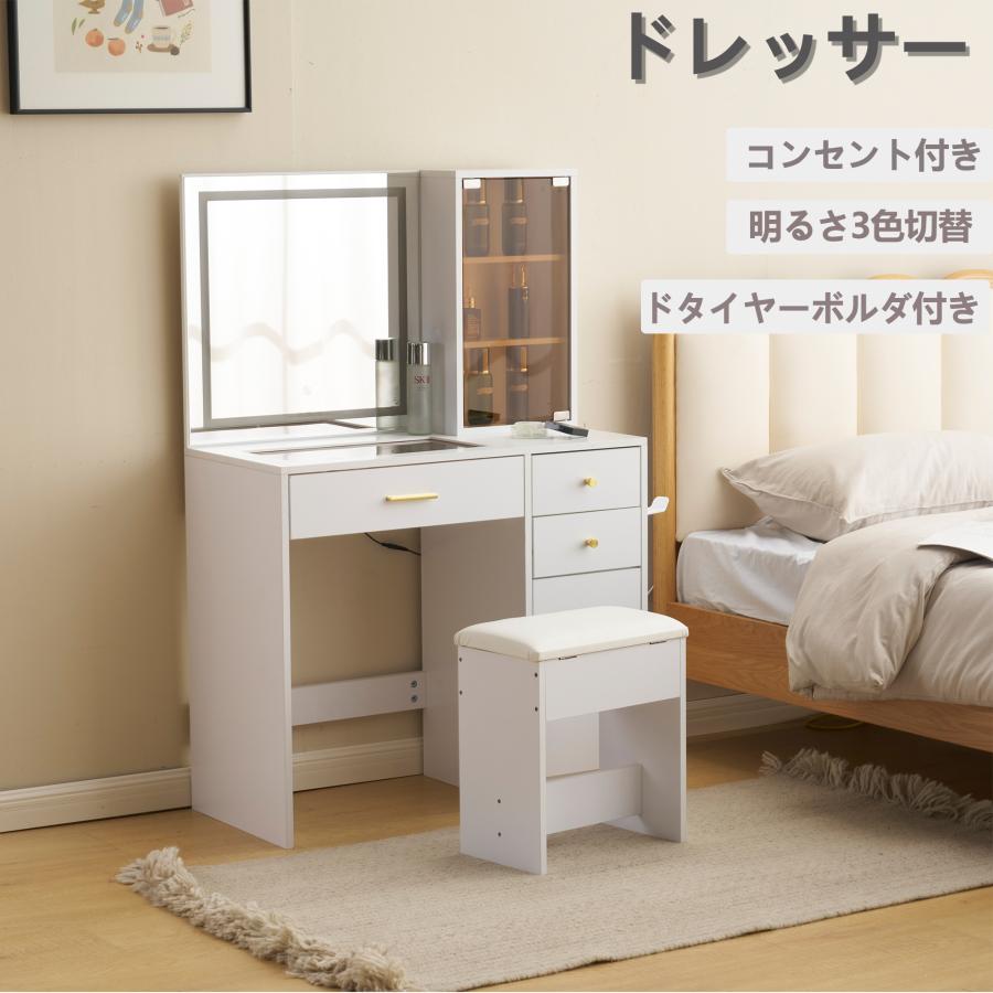 - リビング収納 > ドレッサー・鏡台 > ドレッサー 化粧台 テーブル 鏡台 コンセント付き ライト付き 3色LED ドレッサー 化粧台 ライト付き 3色LED ドライヤーホルダー コンセント