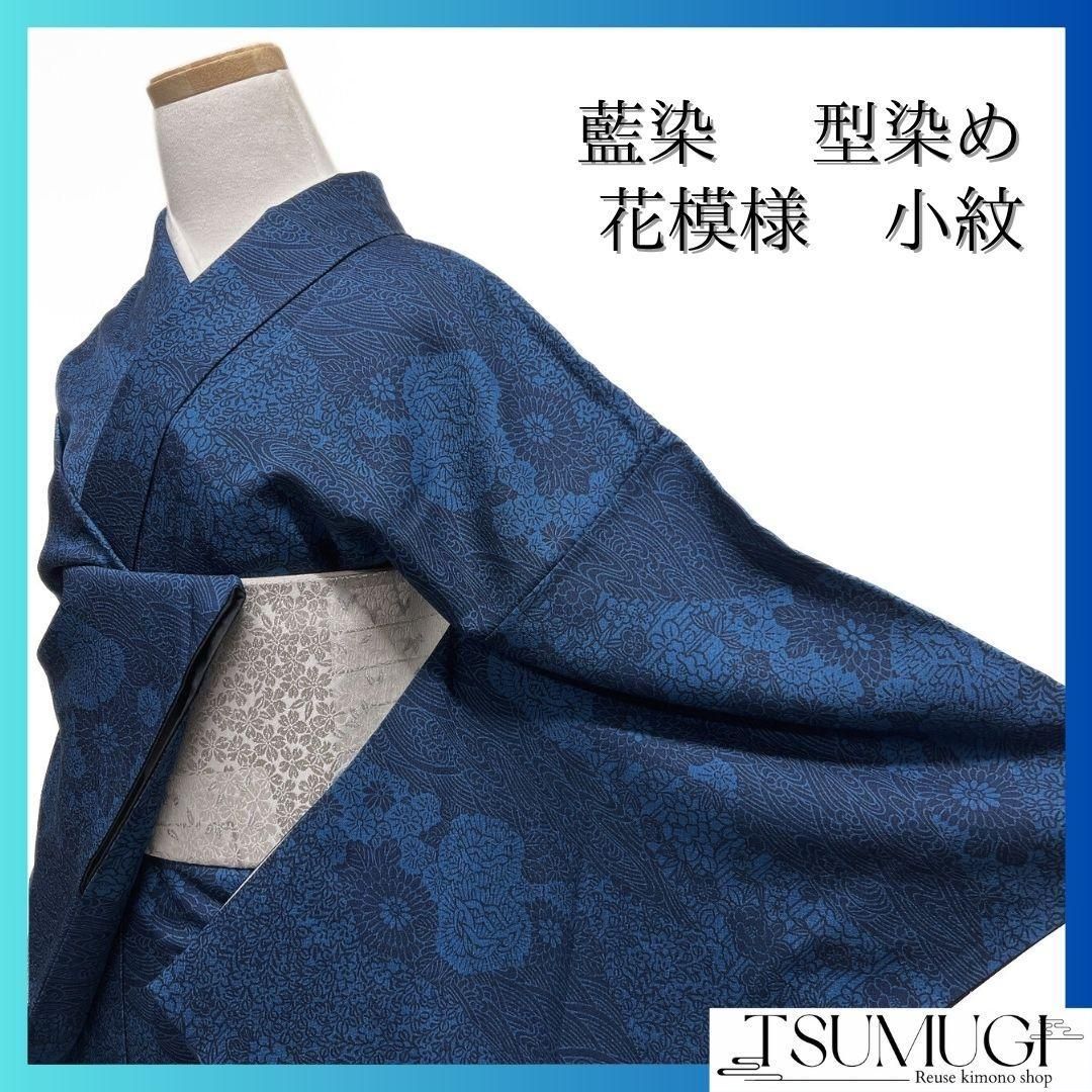 | メーカー | 小紋 藍染 型染 菊花 牡丹 波模様 着物 075a p |