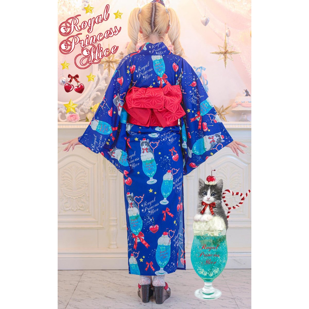 | 商品の特徴 | fit=scale-down,w=1200。Royal Princess Alice】にゃいすクリームソーダ・浴衣 | KIST ONL。princessalice にゃいすクリームソーダ・浴衣(青) Royal Princess。。サイズ着丈:サイズ 女性用(フリーサイズ)身 丈 約160cm ■(帯にて丈は調節可能)袖 丈 約47cm裄 約67cm素材素 材 (ポリエステル100%)※浴衣本体のみで、帯は付いておりません、アクセサリーは別売りです。にゃいすクリームソーダ ワンピース&カチューシャセット(ネイビー。浴衣のみの販売です | ||