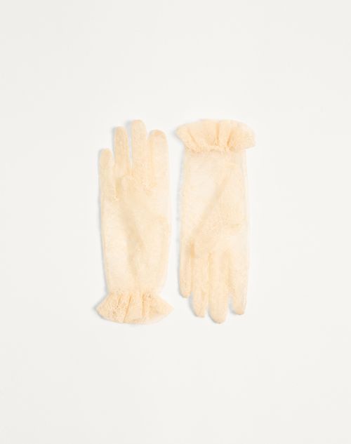 VALENTINO GARAVANI レース グローブ 手袋 Vロゴ 25ss Vlogo Signature Lace Gloves for Woman in Butter/gold | Valentino US