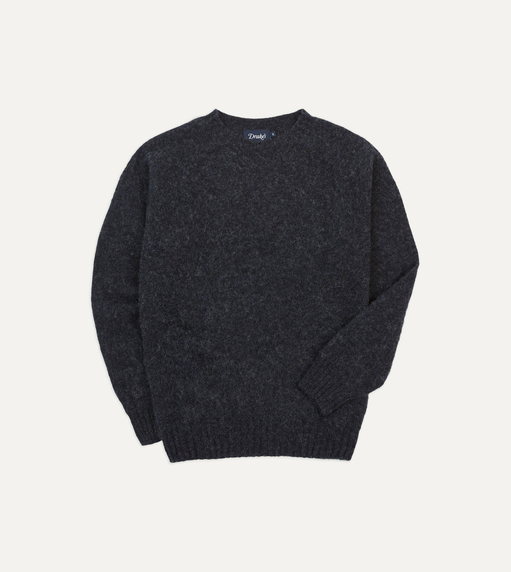 Drake’s ドレイクス シェットランドウールニット サイズS Dark Grey Brushed Shetland Crew Neck Jumper – Drakes US