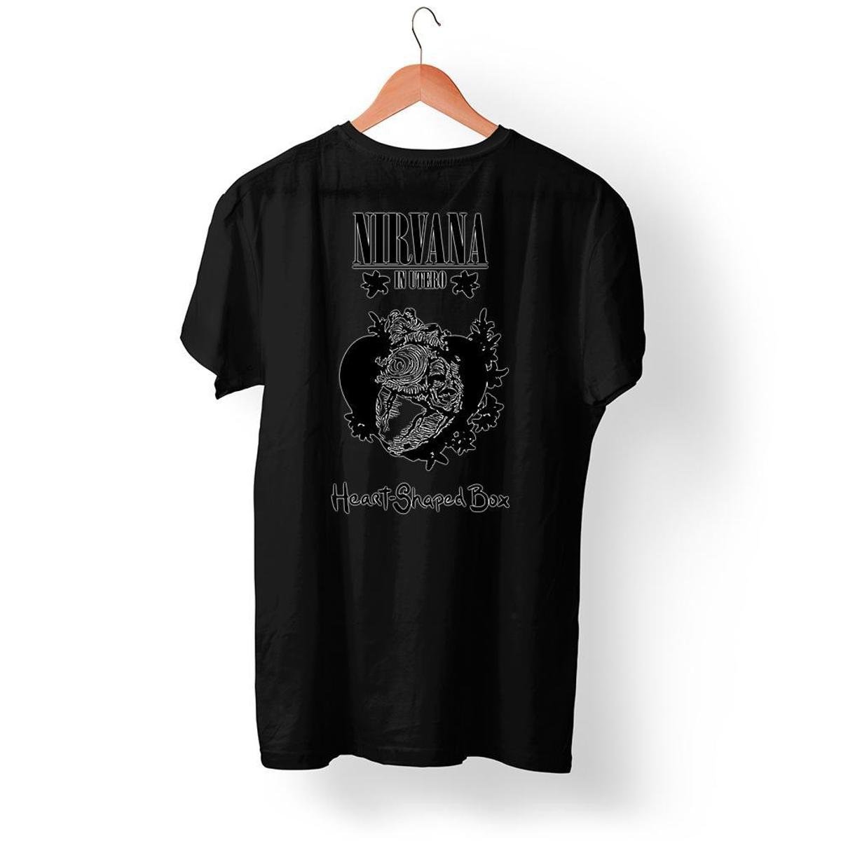トップス NIRVANA IN UTERO HEART SHAPED BOX Camisa Camiseta Nirvana In Utero Heart Shaped Box Rock;Gênero