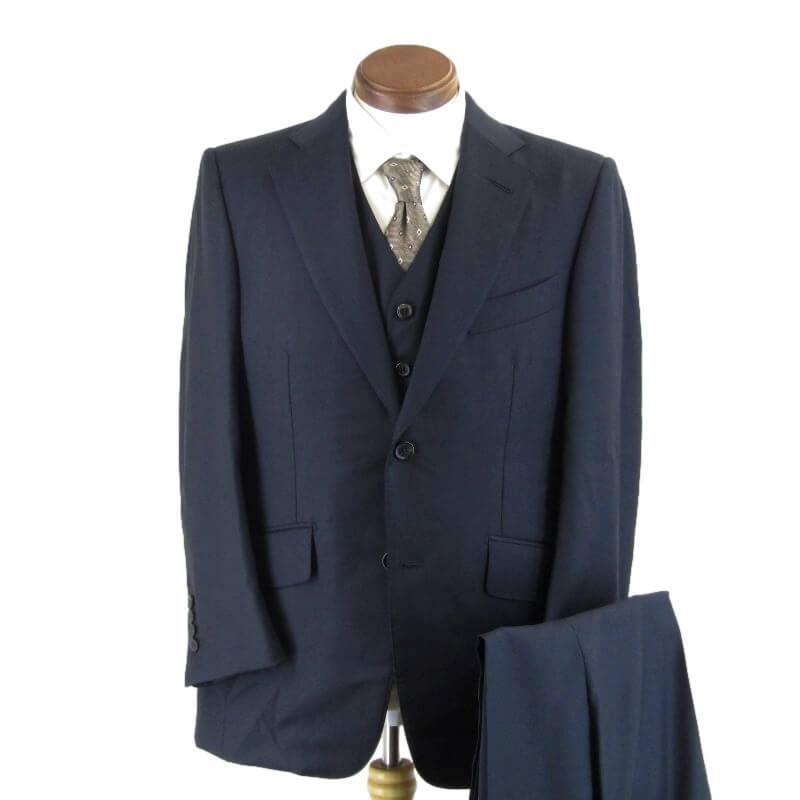 - メンズ > スーツ > 美品 ダンヒル dunhill 英国製 オーダー 3ピース スーツ 濃紺 L相当 美品 ダンヒル dunhill 英国製 オーダー 3ピース スーツ 濃紺 L相当